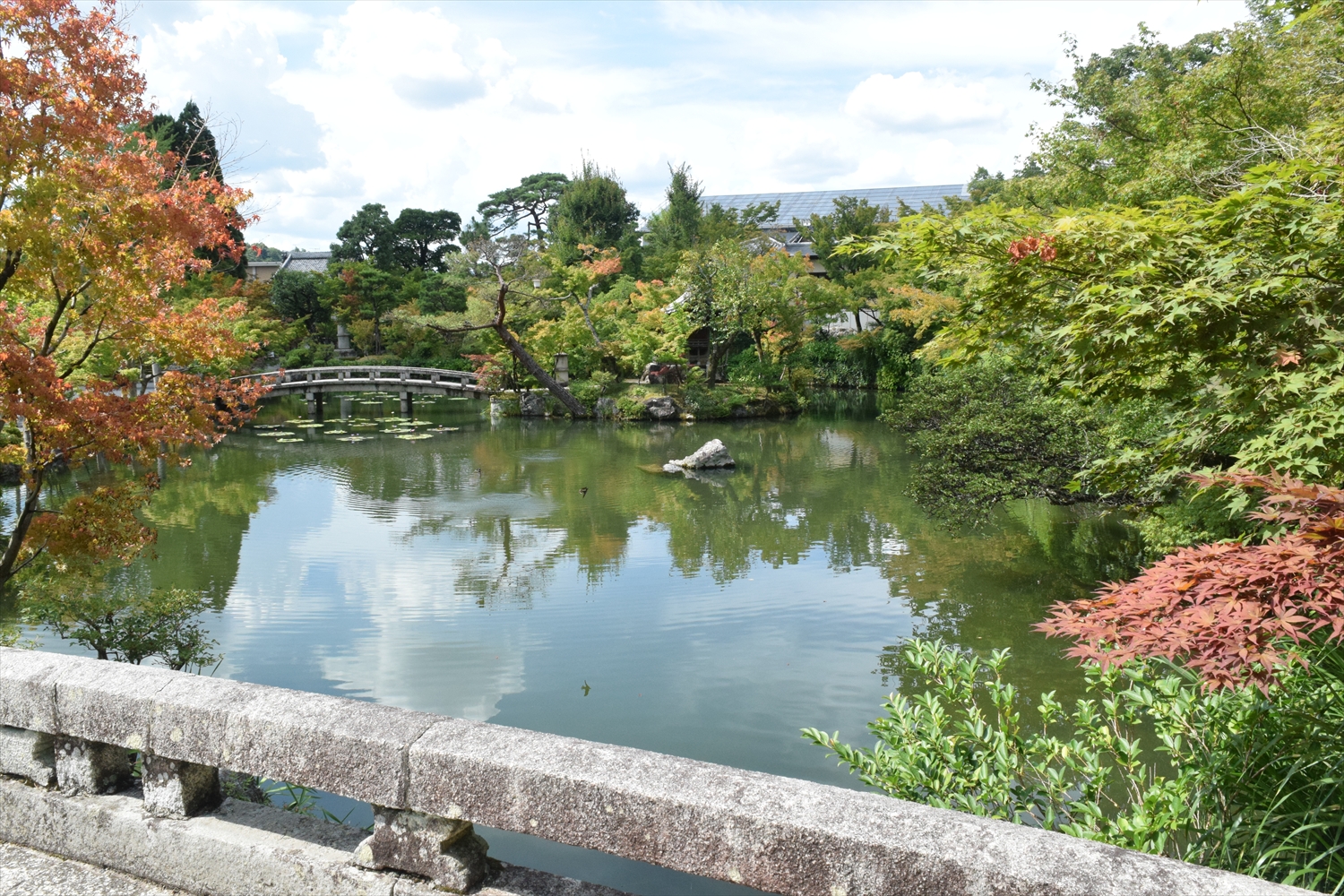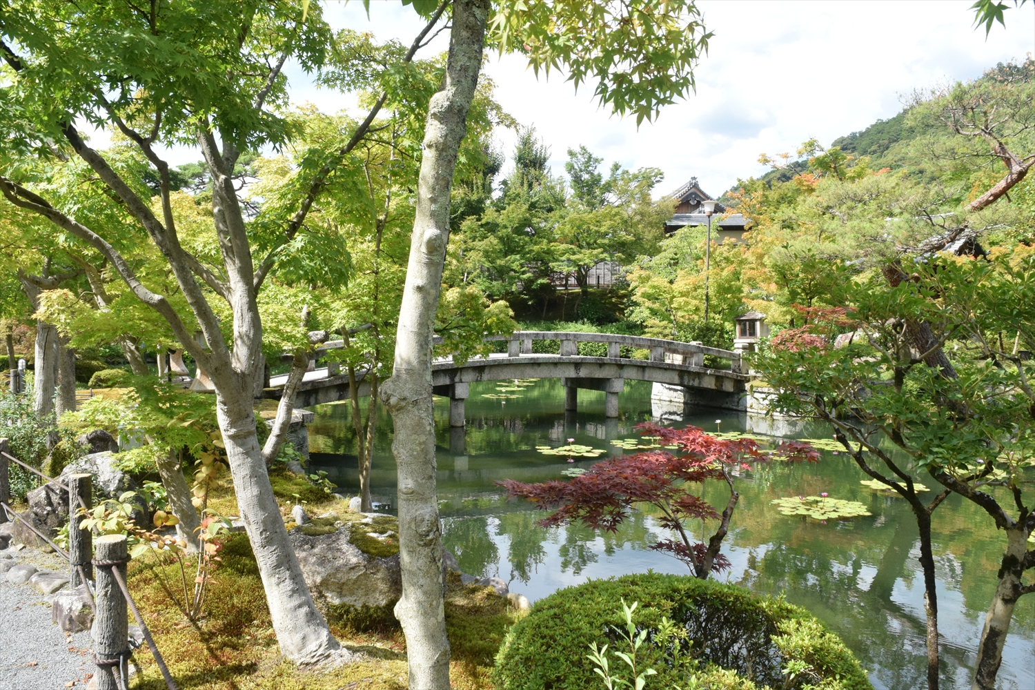 3-1. 池に映る紅葉・青もみじと「極楽橋」