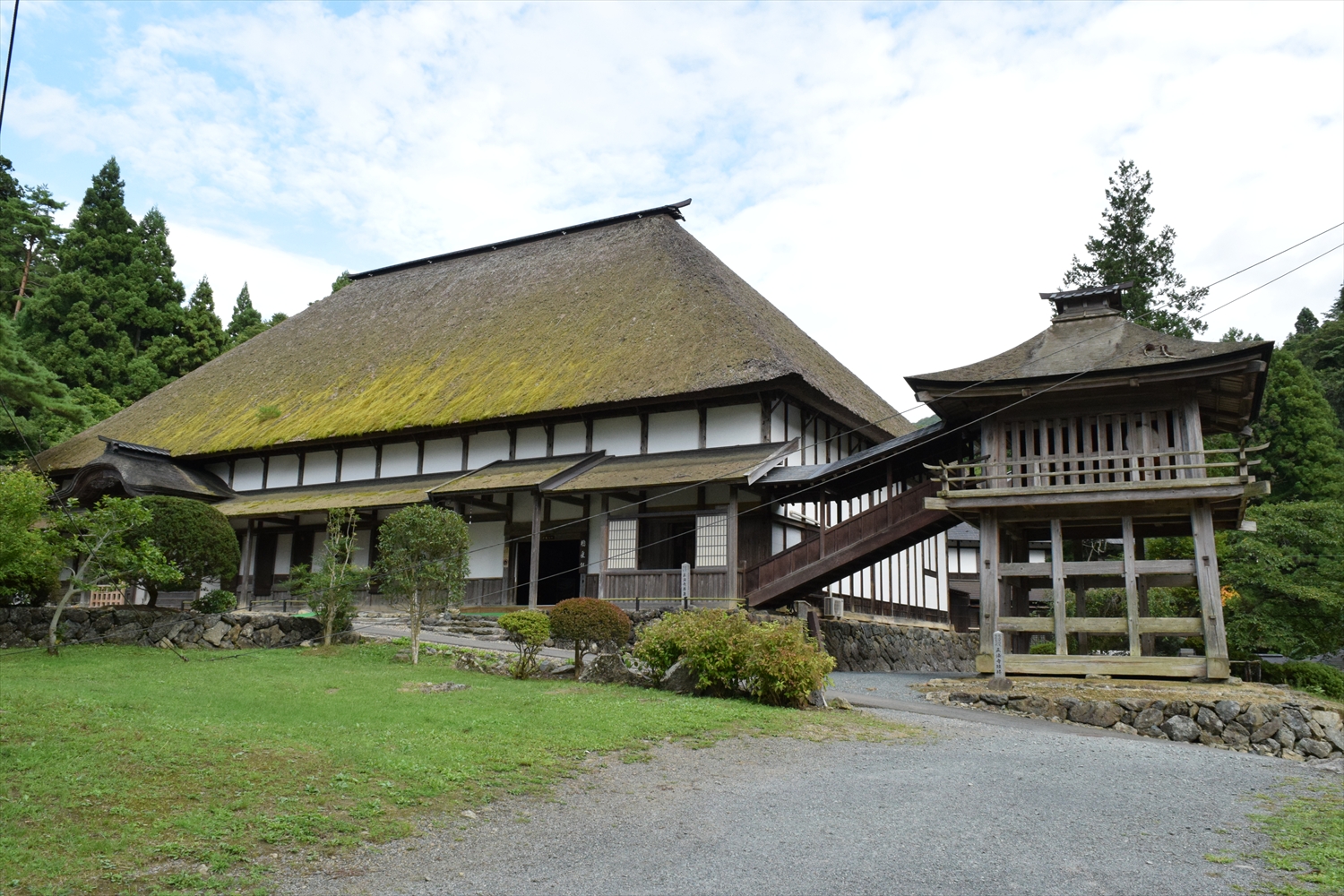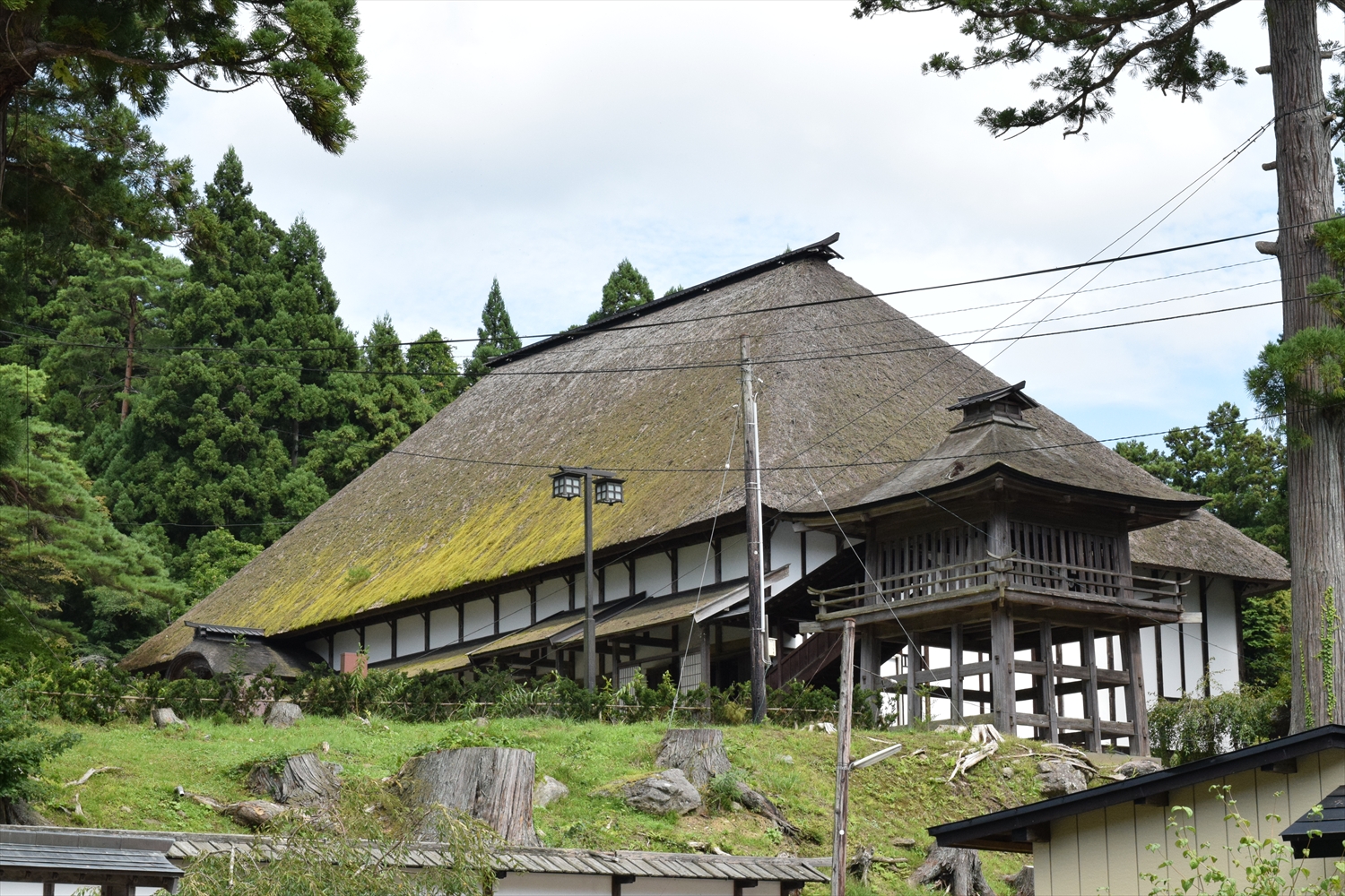 正法寺の方丈は、東北最大級の木造建築として知られています。江戸初期の再建で、禅宗様の簡素ながらも気品ある造形が特徴。大屋根と広縁が印象的で、冬の雪にも耐えうる堅牢な構造を持ちます。庫裏・山門もほぼ同時期に整備され、全体として美しい寺院軸線を形成。現在は重要文化財に指定され、建築史・宗教史の両面から高く評価されています。