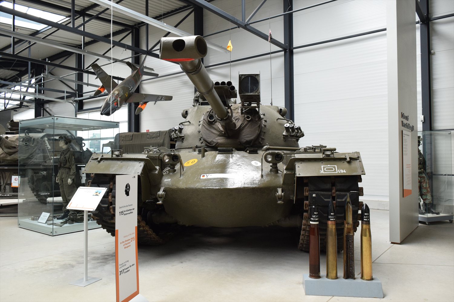 展示リストでは「Halle 2 6 1962-1990」と明記され、ホール2に分類。冷戦期の西側戦車が集められたエリアに並んでいます。周囲にはレオパルト1やセントュリオン、T-55などが配置され、時代比較が容易にできます。