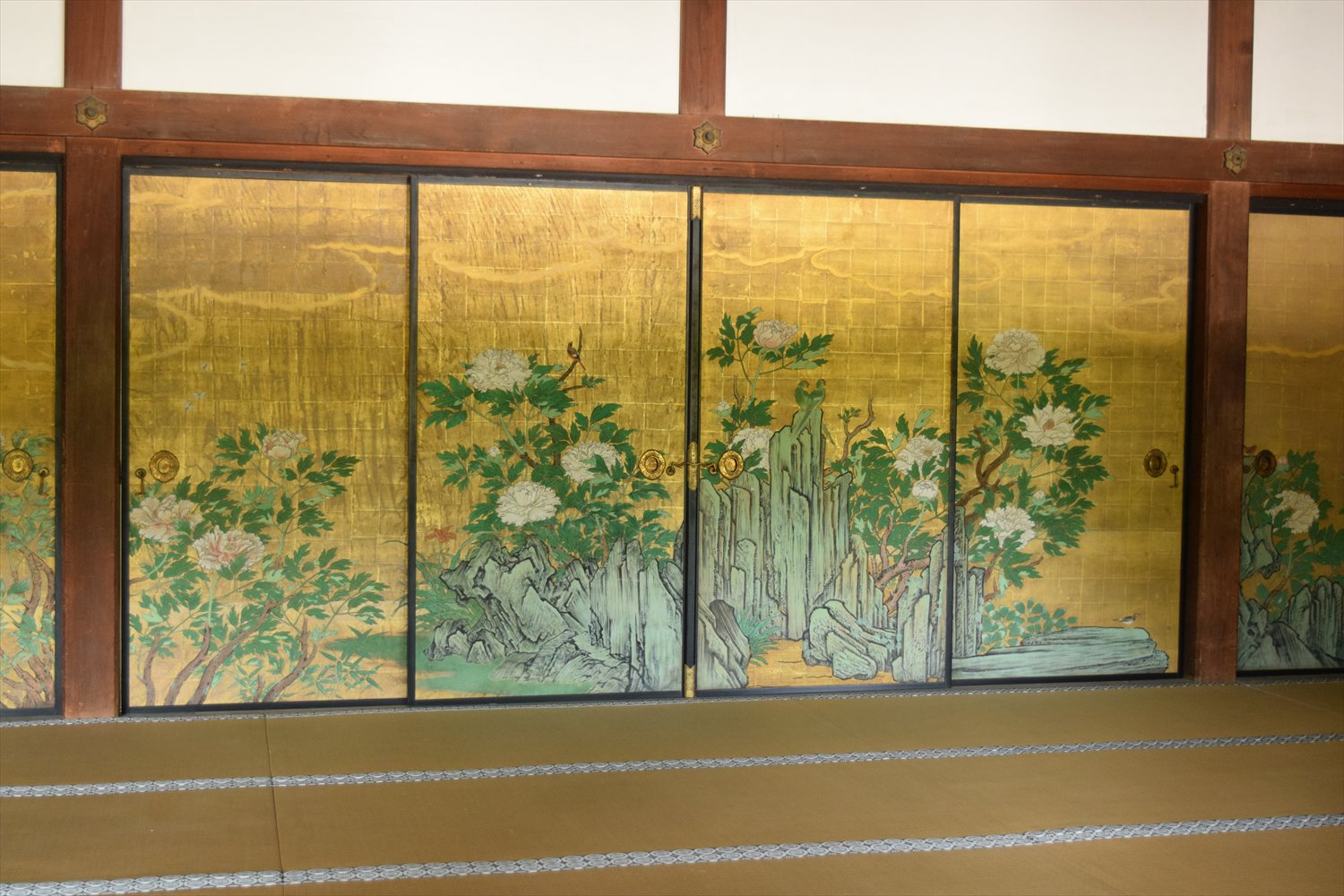 一歩足を踏み入れた瞬間、空気が変わる——それが大覚寺宸殿です。金地に咲き誇る牡丹、奥行きを感じさせる山水、静かに広がる余白。そのすべてが調和し、訪れる者の時間感覚をゆっくりとほどいていきます。