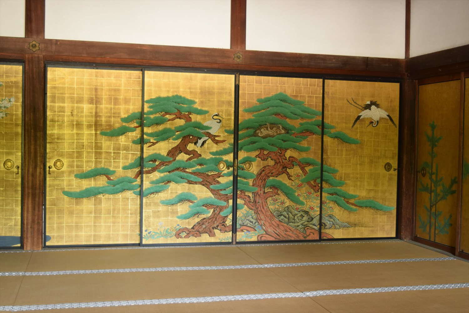 宸殿の襖絵は、絵画としての完成度だけでなく、空間との調和を徹底的に考え抜いて描かれています。光の入り方、見る人の動線、部屋ごとの性格まで計算され、襖絵は建築の一部として機能しています。